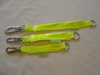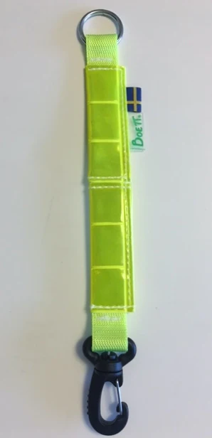 Koppel-förlängning i reflex. En hållbar och slitstark hake knäpps fast i halsband eller sele, kopplet knäpper du fast i metallringen i andra änden. Starkt nylonband går igenom hela produkten, gul reflex håller dig säker på vägarna.