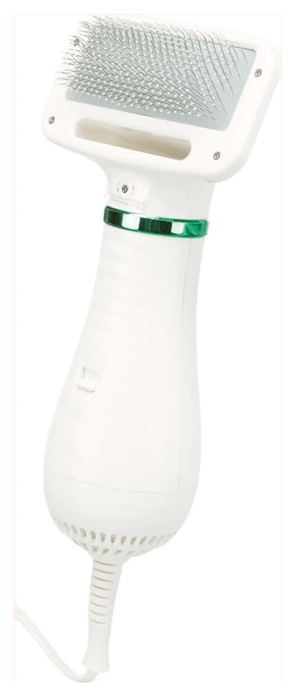 Trixie’s fönkarda går att ställa in på två olika värmenivåer. Med dess jämna och tystgående motor passar den även känsligare djur. Borsten har små knoppar längst ut på stråna för att samtidigt kunna ge en mjuk massageliknande upplevelse. Borstdelen är utbytbar. Färg: Vit Material: Plast
