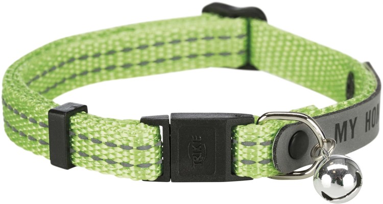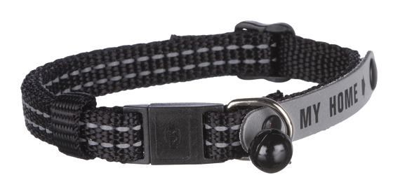 Katthalsband "MY HOME" justerbart med adressflik, reflex, mix färger