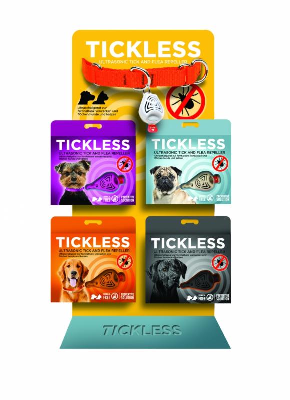 Ultraljudsavvisare mot fästingar. Passar hund och katt. Dosan hängs i halsbandet och hjälper till att hålla borta loppor och fästingar på ett ekologiskt sätt och helt utan biverkningar. Avvisaren har en aktionsradie på ca 1,5 meter. Produkten har ett ej utbytbart lithiumbatteri som håller ca 1 år. TickLess tål vatten.